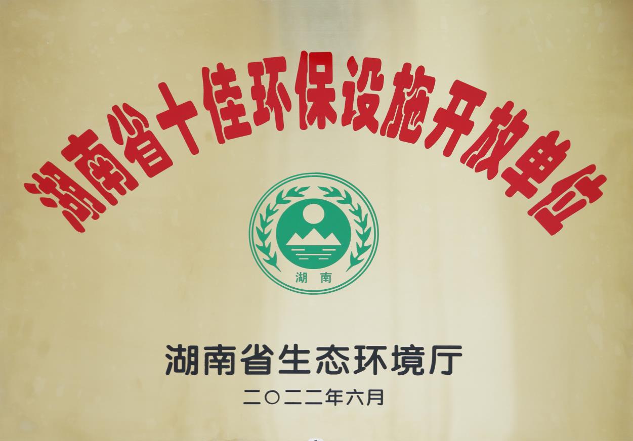 • 2022年6月被湖南省生態(tài)環(huán)境廳授予“湖南省十佳環(huán)保設(shè)施開放單位”